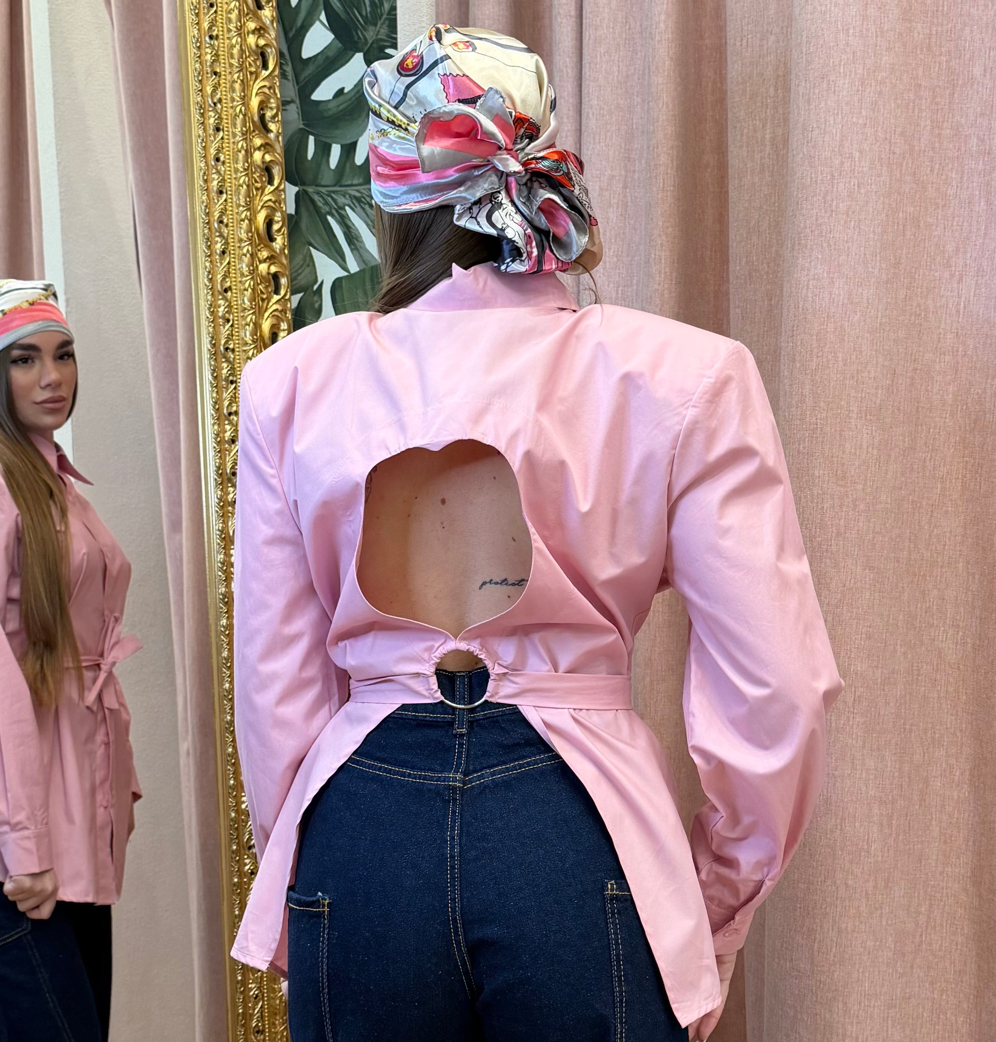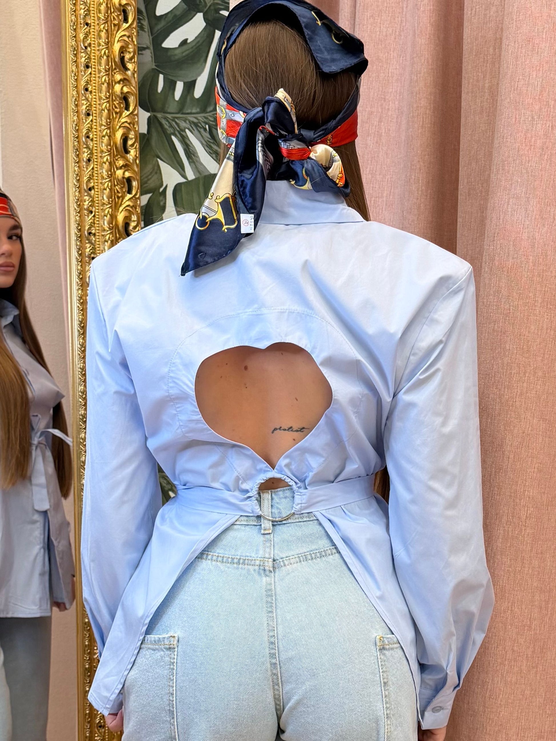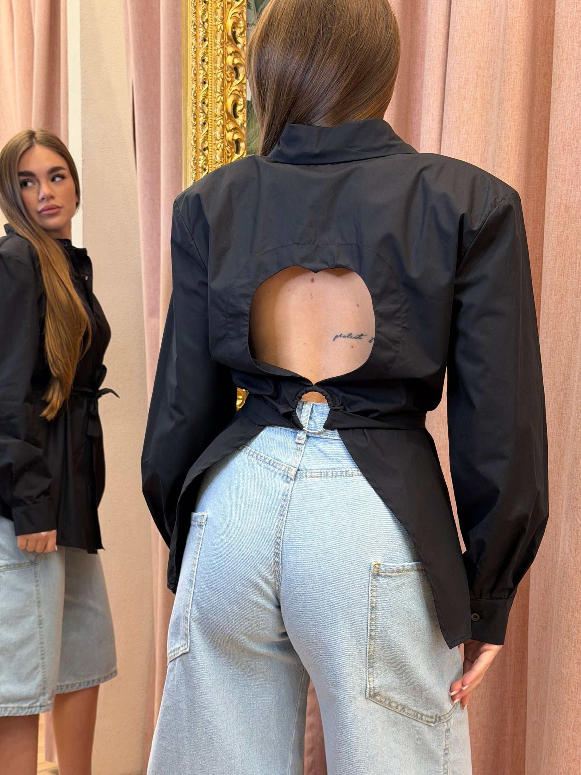 CAMICIA IN COTONE CON SPALLINE E CUORE APERTO SUL DIETRO