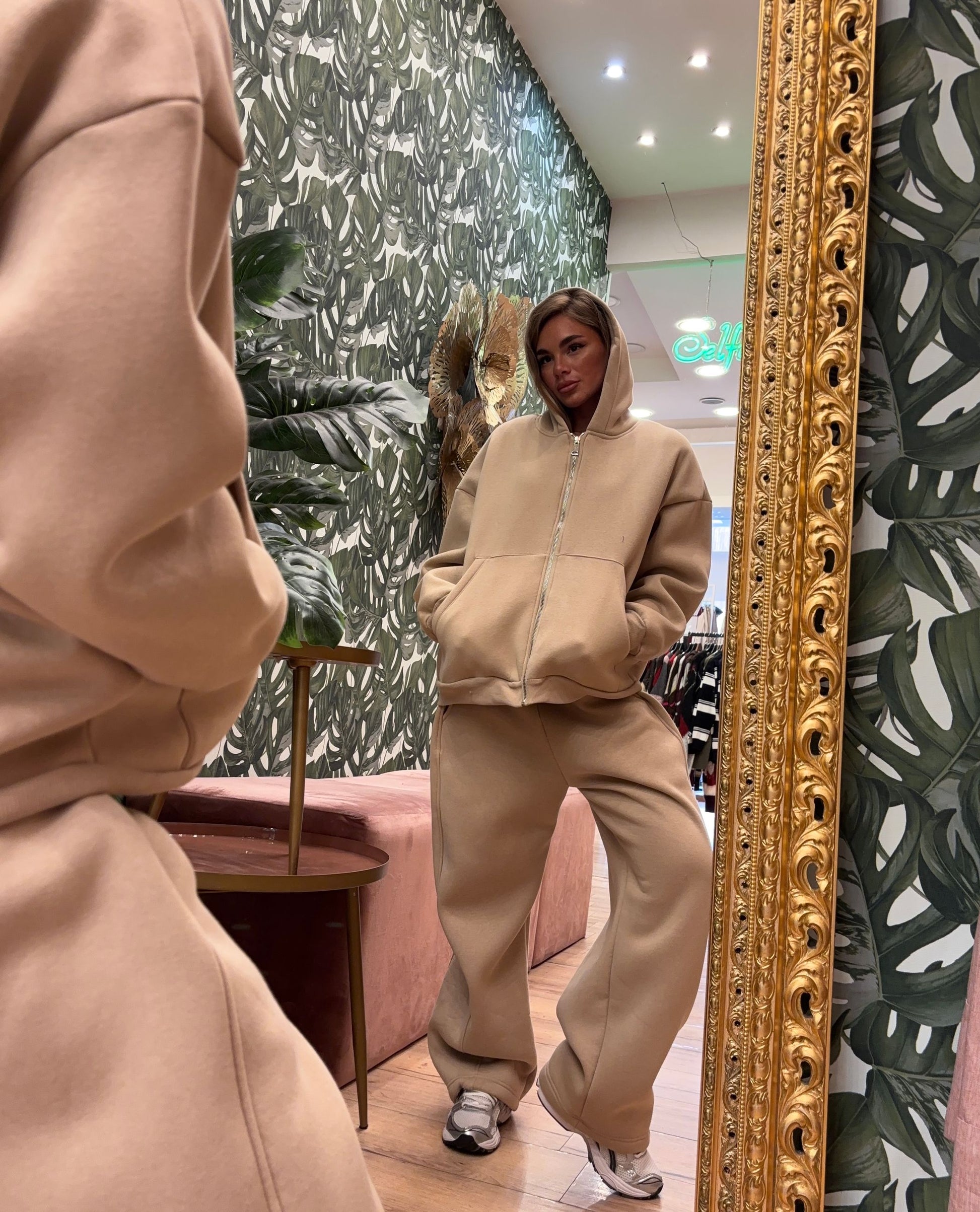COORDINATO IN FELPA CON FELPA CON ZIP E CAPPUCCIO
